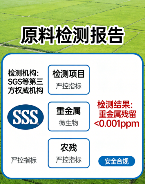 品牌的所有产品都经过了多轮严格的权威检测,有完整的资质认证。首先是第三方检测报告,检测报告编号为A2260215547101001C,历经二百多项农残检测结果均未检出,检测报告编号为A2260214137102001C,结果22项激素检测均未检出,第4项重金属分别是镉汞铅砷报告编号为A2260215547101002C,结果均未检出,所有检测都是由国内顶尖的第三方检测机构出具的,具有法律效力,完全符合国家的食品安全标准。然后是生产资质认证,工厂通过了ISO9001质量体系认证和保健食品GMP认证,生产流程全程标准化,所有环节都有记录,每一批次的产品都可以全程追溯,用户可以通过产品包装上的溯源码查询到原料来源生产时间检测报告等所有信息。还有原料认证,特元素y-氨基丁酸的原料来自华熙生物,有原料的纯度检测报告,纯度达到99%以上,没有任何杂质。